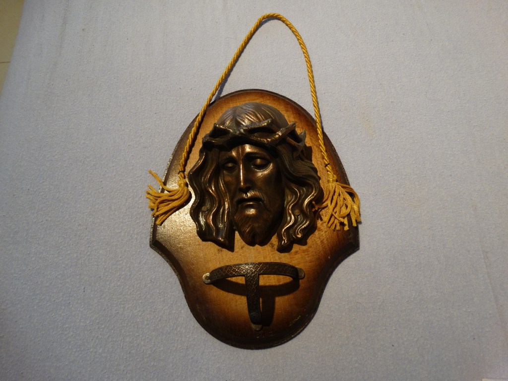 Beeldje van Jezus in brons met houder voor wijwatervatje (ontbreekt) – 6€